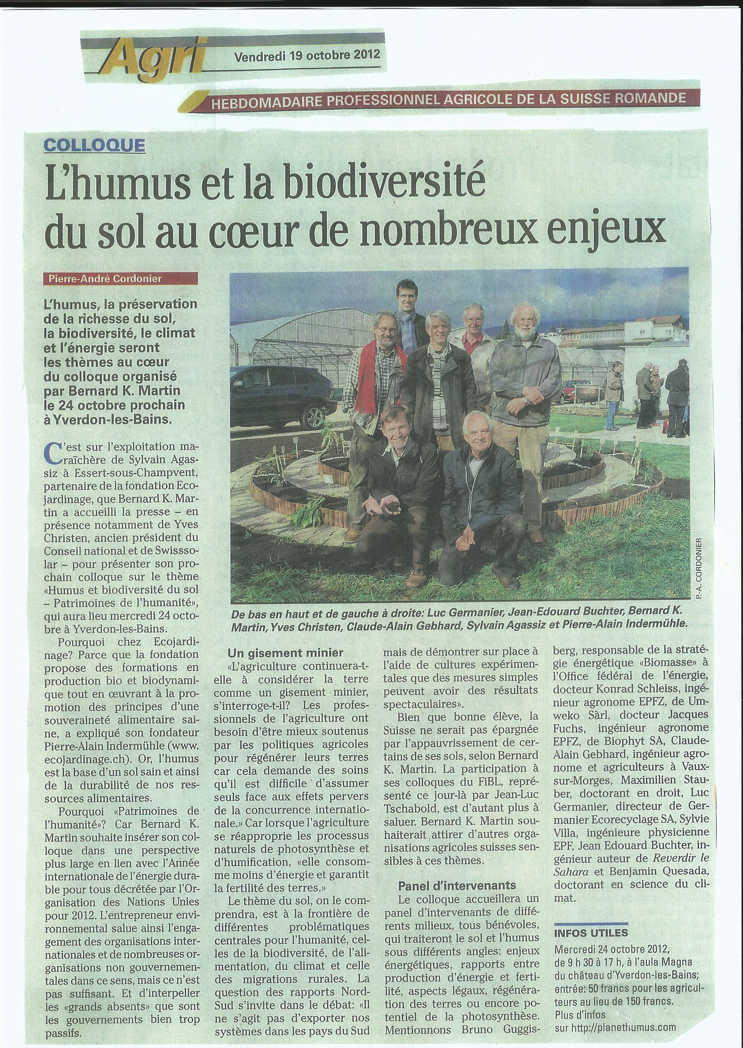 Cliquer : Article AGRI-Hebdo 2 novembre 2012 (pdf)
