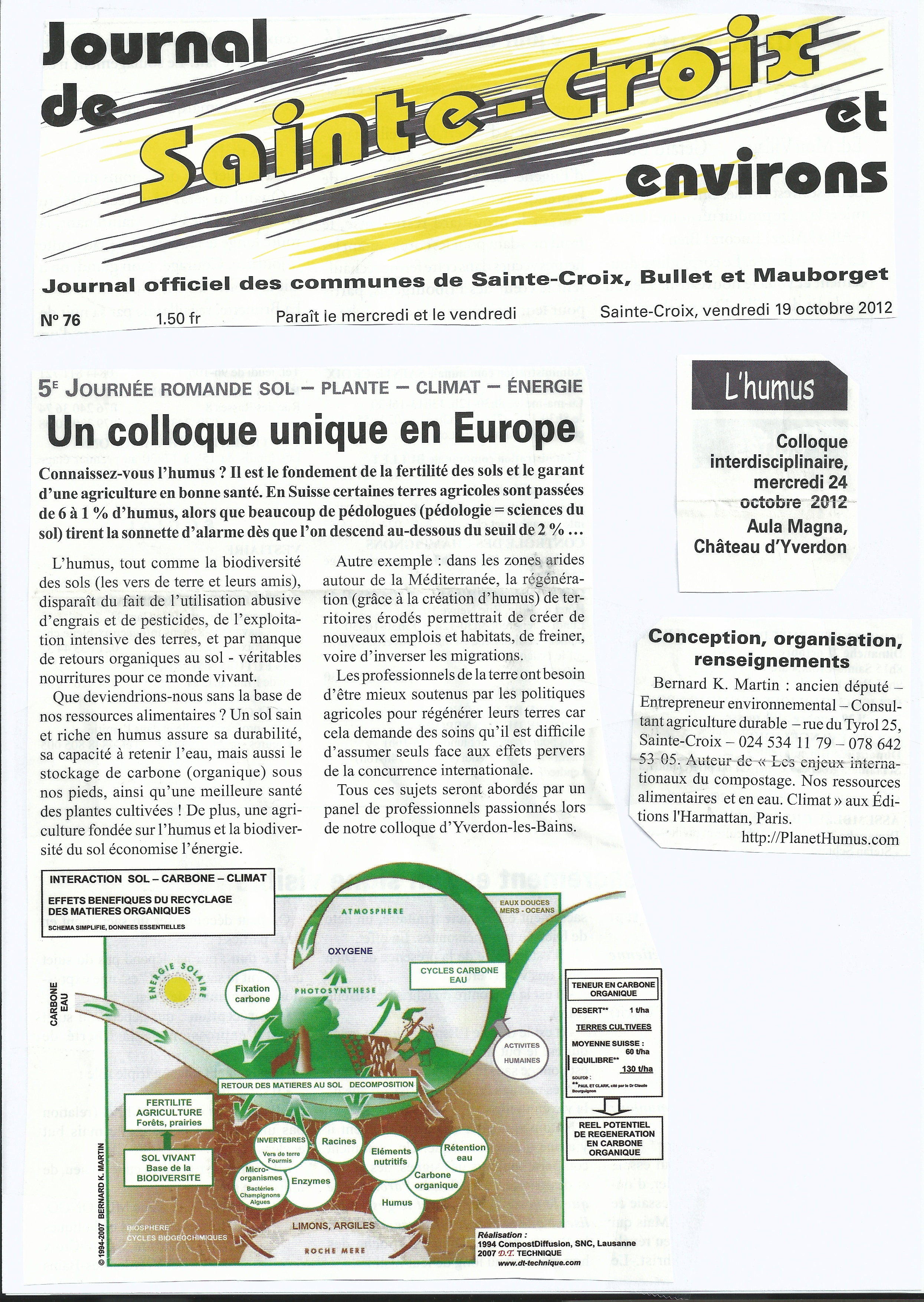 Présentation du Professeur Jean-Michel Gobat, docteur en biologie, professeur de pédologie, Université de Neuchâtel (ppt) : « Le fonctionnement du sol vivant, fertile, durable, multifonctionnel »…. SteCroix Mat. Organ.JMGobat