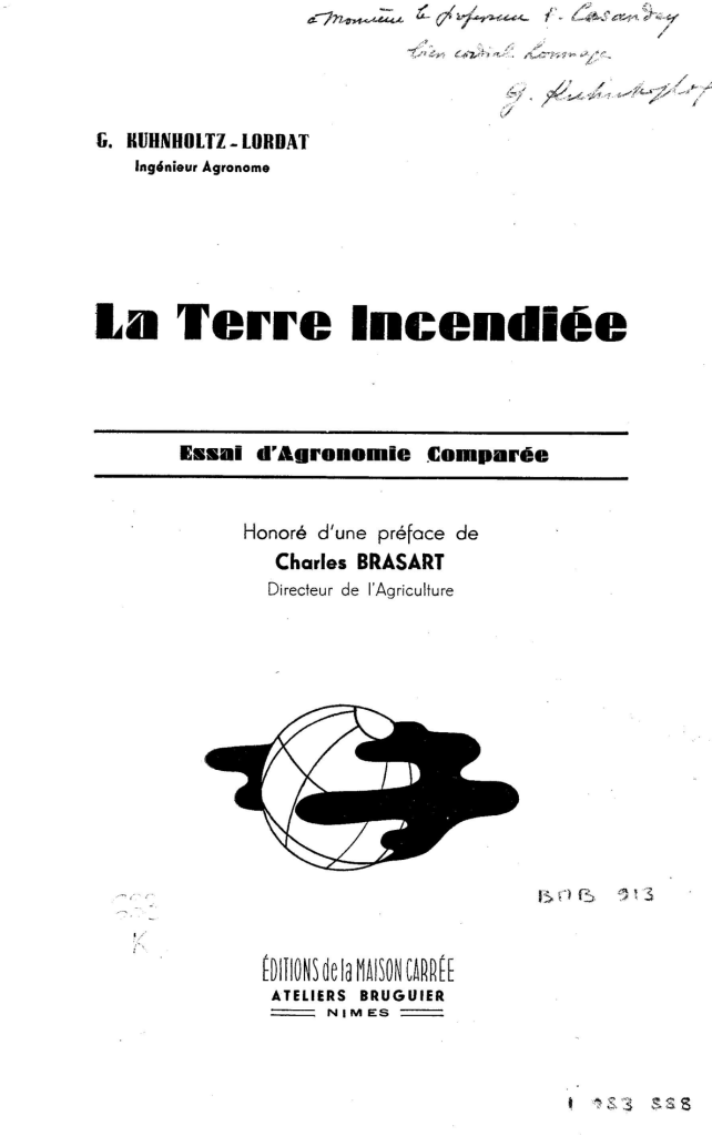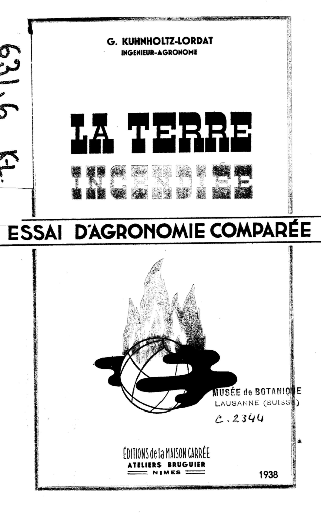 Quant aux engrais solubles dits « chimiques » et aux pesticides de synthèse, dans les années 1930 Georges Kuhnholtz-Lordat ne pouvait imaginer le développement de ces produits ni leurs conséquences. Mais il avait déjà fait le lien entre la régression des couverts végétaux, des sols vivants, de l’humus, et le déclin des civilisations. En tirerons-nous les enseignements, appliquerons-nous sur le terrain les corrections nécessaires, particulièrement en ces temps de COP21 sur les changements climatiques ?