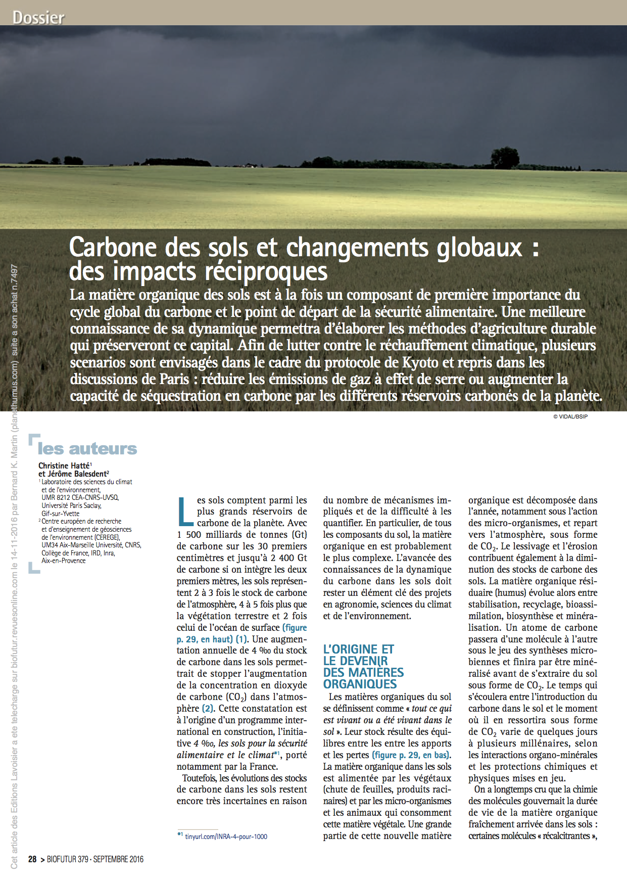 Article pluridisciplinaire publié dans BIOFUTUR MAGAZINE